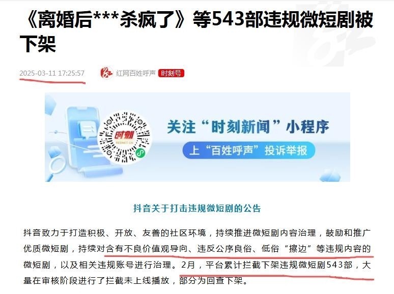 此次密集通报违规剧目名单,更释放出明确信号:监管不是走过场,而是动真碰硬、常态长效。此前《人民日报》亦刊发评论,直言“挑动情绪、践踏底线的短剧,必须下架”。
