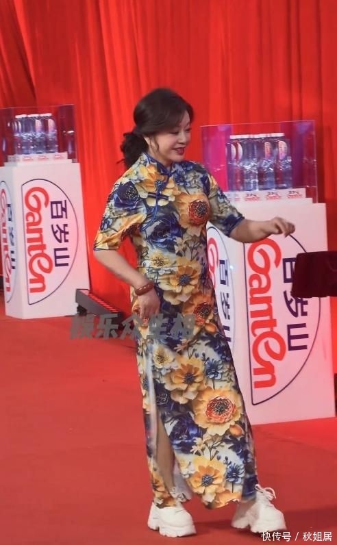 按传统审美逻辑,旗袍当配细跟高跟鞋方显典雅,但她偏偏打破定式。