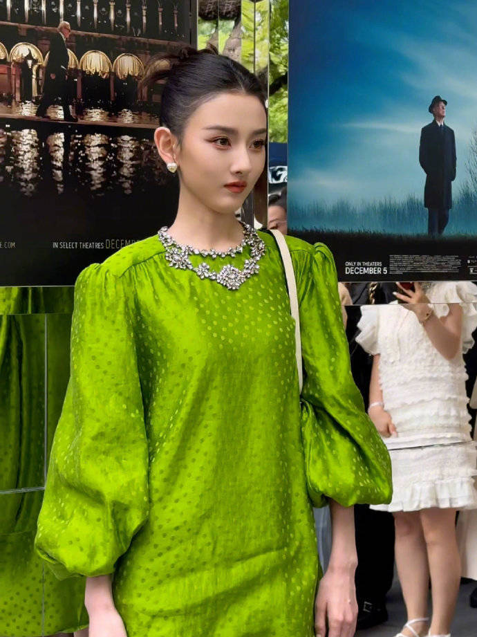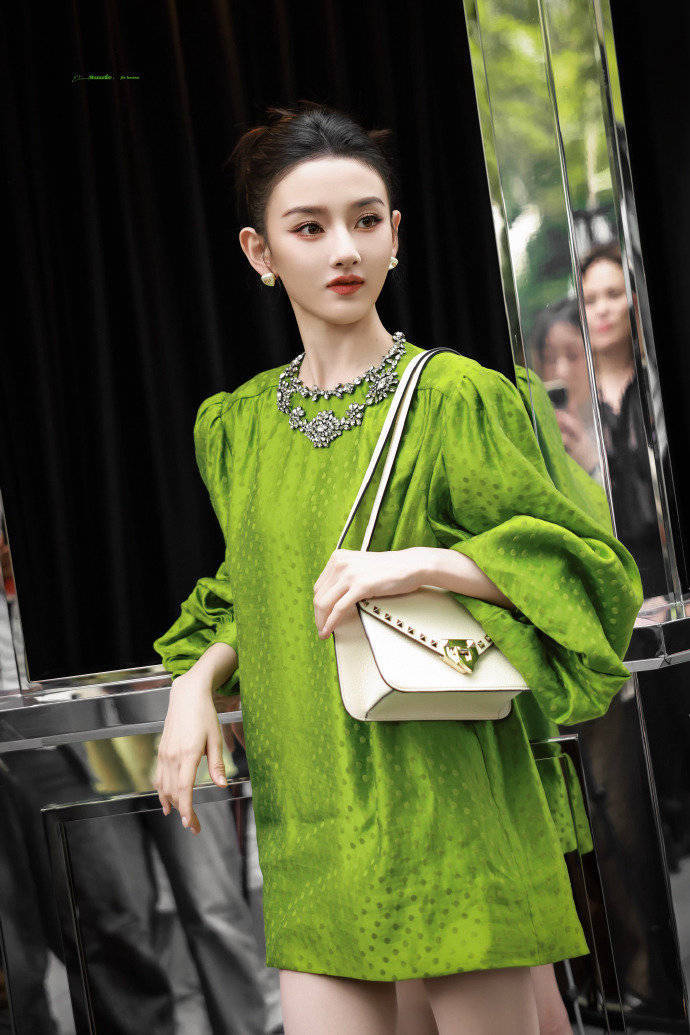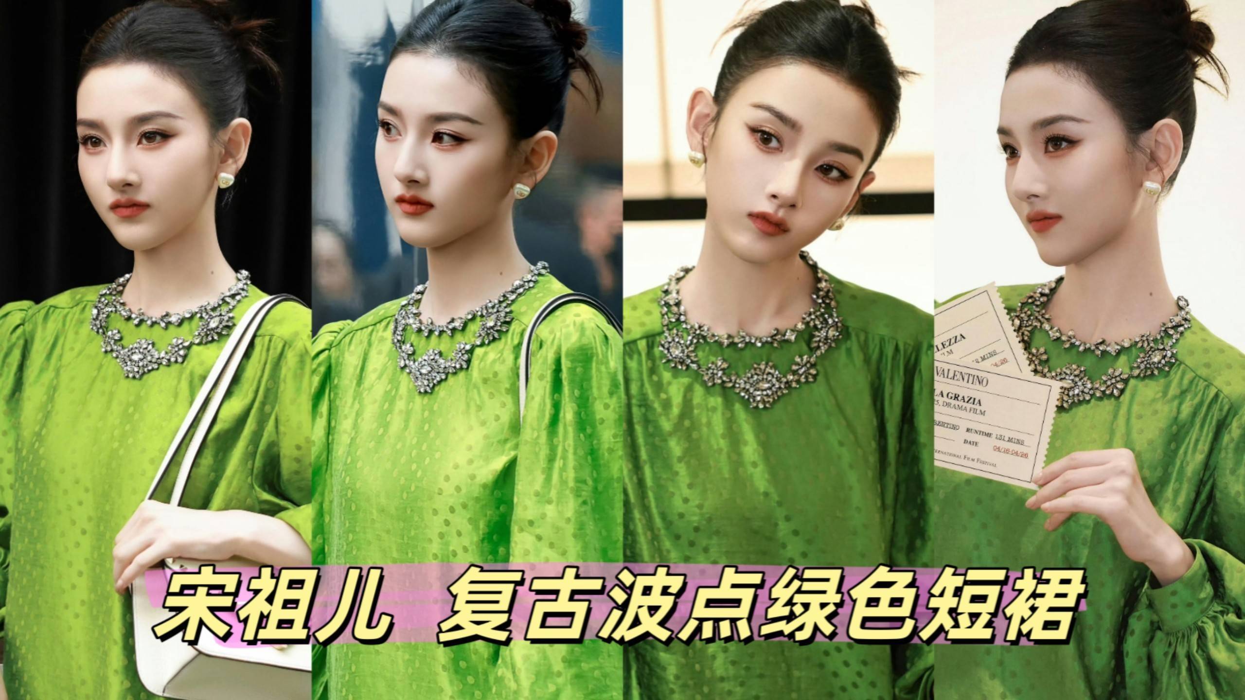 其实宋祖儿一直很会选造型,之前的各种红毯和活动造型都让人眼前一亮。这次的复古绿波点裙更是加分,波点元素自带俏皮感,绿色又显得特别有活力,再加上大光明盘发把她优越的头骨形状完全露出来,难怪大家都说她的骨相是顶级的。不得不说,宋祖儿这颜值和气质,真的是怎么拍都好看,随便一张路透都能当壁纸。
